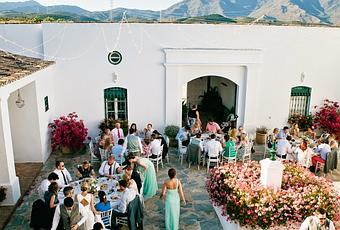 El primer lugar ideal, es un cortijo, con todo lo típico que tiene un cortijo: que si su patio andaluz, que si su jardín… todo muy cuidado y con unas vistas preciosas… Es el cortijo Pedro Jiménez, en Málaga.