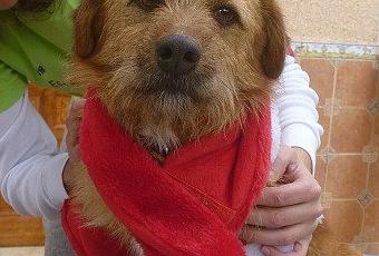 Desde que lo recogí de la calle en mayo con 1 añito, prácticamente nadie ha preguntado por él y no lo entiendo!! Es muy mono!! Y tampoco es un perro grande, cabe en cualquier casa!! Yo esperaba que por navidad ya tuviera un hogar, pero nada...el pobre desde cachorrín lo único que ha conocido es la calle y ahora la huerta de mi padre, que tampoco es un hogar adecuado para él. Como merodeaba por un bar, seguramente alguien le enseñó a dar la mano, y cada vez que te acercas a tocarlo y le pones tu manita, te la da (se ve en las fotos); es gracioso.
