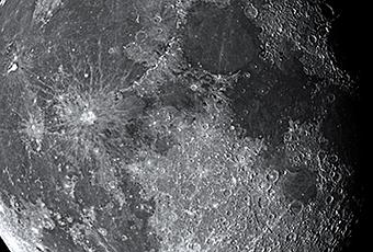 Imagen de detalle del MARE CRISIUM. En la parte superior del Mar, me llama la atención el cráter Cleomedes, con su elevación central iluminada y rodeada kilómetros de oscuridad.