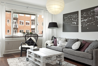 Sólo decorativamente hablando ¿eh? que aunque sea principio de semana aquí siempre estamos de buen humor ;)) La decoración que os presento hoy es sencilla y resultona, con una buena base de blanco en las paredes, en contraste con la tarima oscura en el suelo. Con respecto a los muebles un poco de mezcla entre low cost y reciclado, sencillo pero práctico y funcional. Buen uso del color gris que aporta calidez a las habitaciones entre las piezas blancas. Ya estoy en casa, calorcito otra vez :))