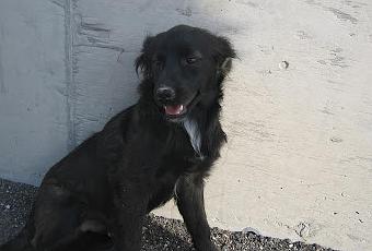 Lupo, vive solo en una obra de la que puede salirse, tiene sobre un año y pesa unos 5 o 6 kg, no crecerá más. Nada más verte se tira para recibir caricias, es muy cariñoso.