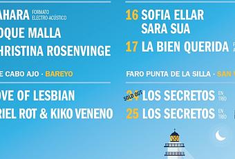 Además, en el faro Cabo Ajo de Bareyo están programados los conciertos de Love of Lesbian y la sesión de DJ Chema Armengou el viernes 9 de septiembre. Por su parte, Kiko Veneno y Ariel Rot actuarán el sábado 10 de septiembre, con sesión de DJ Álex del Toro.