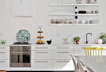 La decoración de este piso sueco de 69 m² es de esas que apetece mucho ahora mismo. Estilo nórdico alegre, muy luminoso, en blanco refrescante con accesorios de motivos alegres (dentro de unas semanas tendremos tanto calor que sería impensable tener todo abierto de esa manera en un hogar español).