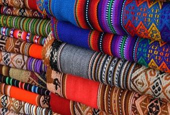 Pila de aguayos en el mercado de Cuzco. Foto: Sara Gordón