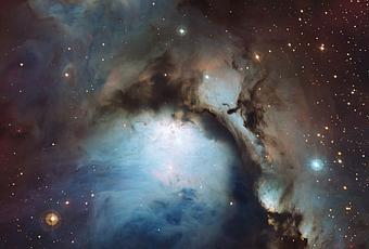 La nebulosa Messier 78 es la protagonista de esta imagen, La brillante luz estelar rebota con las partículas de polvo de la nebulosa, iluminándola con una luz azul dispersa. Messier 78 es un buen ejemplo de una nebulosa de reflexión. La radiación ultravioleta de las estrellas que la iluminan no es lo suficientemente intensa como para ionizar el gas y hacerlo brillar: sus partículas de polvo sólo reflejan la luz estelar que reciben. Pese a esto, Messier 78 puede ser observada fácilmente con un telescopio pequeño, siendo una de las nebulosas de reflexión más brillantes del cielo, ubicada a unos 1600 años-luz de distancia, en la Constelación de Orión.