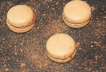 Sexto,la elaboración de la ganache, ponemos en un cazo al fuego la nata y el chocolate hasta que hierva, bajamos el fuego al mínimo y lo removemos sin parar 2 minutos. Apartamos y reservamos. Cuando esté frío lo pasamos a una manga pastelera y vamos poniendo un poco en un macaron, y tapamos con otro macaron y presionamos suavemente. Listos para comer.
