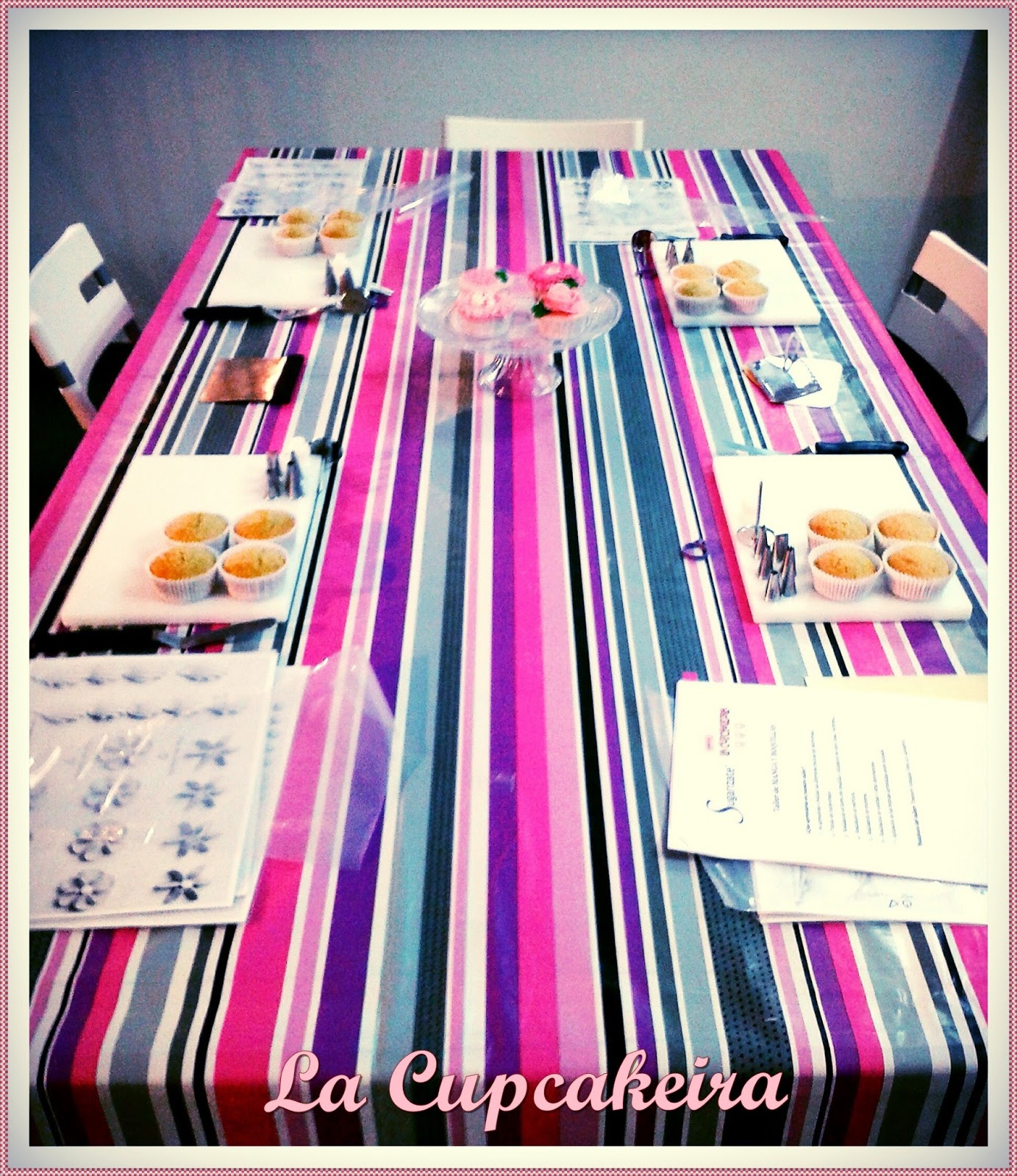 Y un consejo que les doy, para el taller hice la noche antes las magdalenas, como siempre y salieron estupendas, muy esponjosas, dejé que se enfrían en la rejilla y luego metí en el transportador de cupcakes, y no sé que les pasó si fue la humedad o algo pero quedaron chiclosas y algo apelmazadas!!! Y eso que de la misma tanda dejé unas cuantas en casa, en la caja metálica y estas estaban estupendas!!! Que pena!!!
