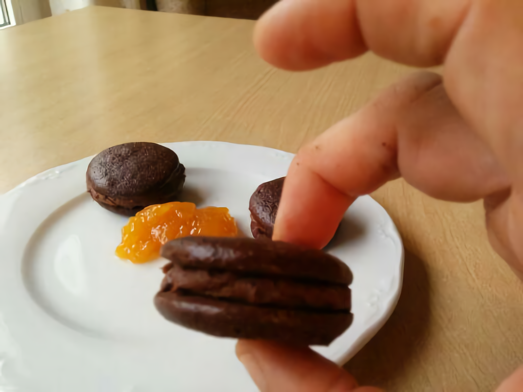 14.Introducimos la crema en la manga pastelera con una boquilla redonda no muy gruesa y cuando los macarons estén fríos, los rellenamos con la crema y cubriéndolos con otro por encima.