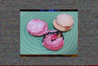 150 g de claras 75 g de azúcar 200 g de azúcar glas 140 g de almendra molida unas gotas de colorante rojo Relleno: 250 g de mermelada de frambuesa 2 cucharadas de agua de rosas Opcional: sirope de caramelo o de chocolate para decorar. Preparación: Primero batimos las claras y el colorante rojo con varillas, añadimos el azúcar normal y seguir batiendo hasta obtener un merengue liso y brillante. Mezclamos el azúcar glas con las almendras. A continuación añadimos el merengue dejando que se baje un poco. Una vez hecho esto, preparamos pequeños montoncitos sobre papel para horno y lo introducimos en él a 180°C durante 10 minutos. Ahora preparamos el relleno: Primero mezclamos la mermelada con el agua de rosas. Una vez preparada la mezcla, cogemos los macarrons pegándolos de dos en dos con el relleno que hemos preparado. Listos para acompañar un buen té con leche.