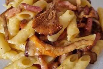Estamos en temporada de setas y precisamente el otro día el fin de semana fuimos a coger trompetas de la muerte a la montaña y encontramos estos rebozuelos, son pocos si, pero me apetecía ponerlos en una pasta y mi hija que iba a preparar unos macarrones a la carbonara, le dije que le añadiera las setas y asi lo hizo.Yo apenas tengo mucho tiempo libre y ella preparo la comida y hizo las fotos para poder publicar esta receta , si no hoy no habría receta, que suerte tengo con mi cocinillas en casa.Yo llegue de trabajar y me encontré el plato en la mesa, no os imagináis lo ricos que le quedaron!!Hoy os edito yo la receta para publicarla y espero que os animéis a prepárala, os encantaran.