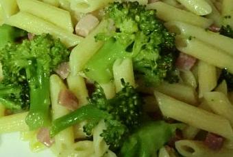 Por último cogemos una sarten honda, echamos 3 cucharas de aceite, pelamos y partimos los dientes de ajo, encendemos el fuego y esperamos a que se doren, añadimos ahora el jamón serrano partido en taquitos y seguidamente se echa la pasta. Mezclamos todo bien, dejamos un par de minutos al fuego y en este momento se echa el brócoli, removemos con cuidado y listo para comer...............................al mezclar con el brócoli hay que tener cuidado pues se puede desmenuzar demasiado.