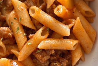 -Pasta integral-300gr de carne picada-1 brik de pisto (o pisto casero)