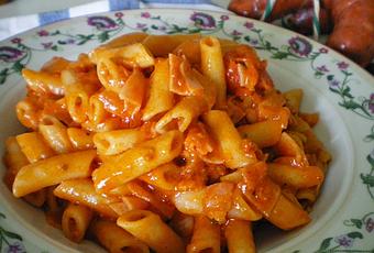Uno de mis platos preferidos y que suele gustar a todo el mundo.Es una receta que aúna a la pasta con el chorizo, un producto originario de la Península Ibérica pero que compagina estupendamente con los macarrones y el jamón york.