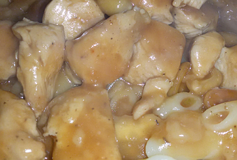 La receta de hoy son Macarrones con pollo en salsa de cerveza, es una receta que también se puede acompañar con arroz en vez de macarrones.