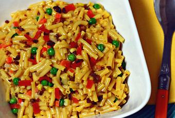 Deja enfriar la pasta por unos minutos. Mientras, puedes cortar los vegetales que vas a añadirle a la ensalada.En un bowl grande, agrega los vegetales y mezcla bien con los macarrones con queso, si deseas puedes añadirle calabacines amarillos o verdes finamente cortados.