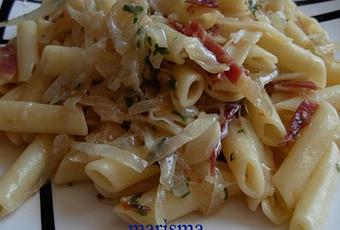 Al tiempo estará la salsa. La vertemos sobre la pasta y dejamos cocer todo junto otros tres o cuatro minutos. Rallamos queso curado por encima y servimos bien caliente.