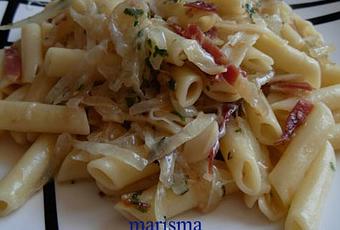 Al tiempo estará la salsa. La vertemos sobre la pasta y dejamos cocer todo junto otros tres o cuatro minutos. Rallamos queso curado por encima y servimos bien caliente.