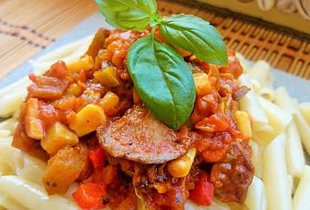 - Servimos la pasta con la salsa de pisto bien por separado o mezclándolas en una sartén.