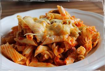 Total, que uno de nuestros mejores recuerdos, mío, de mi hermana, de mi abuelo y de mis primos.... y seguro que de algún tío por ahí también... son estos macarrones.Con ellos mi abuela alimentaba a media humanidad... el truco... una riquísima salsa de tomate casera, dejar un poco durita la pasta para que terminara de hacerse en el horno con el queso y el tomate... y toneladas de chorizo... ahhh!!! y como veréis en la fotos, algo que mi abuela siempre hizo... mezclar paquetes de pasta con alegría, aprovechas el poquito que te queda de unas y otras y las cueces todas a la vez.