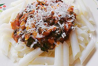 Cocemos los macarrones de arroz según instrucciones del paquete y servimos enseguida con las acelgas y queso rallado al gusto, delicioso!