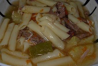 ahora ya en abierto dejamos cocer la pasta unos diez minutos o así. Siempre es preferible que la pasta quede un poquito entera a que quede demasiado blanda porque las pastas que están en caldo se pasan mucho si las hemos dejado cocer demasiado y luego no valdrá si sobra. Servimos bien caliente. Lo que sobre se puede poner en una cacerola más pequeña y ponerla en la nevera. A mi me sobró para dos para otro día.