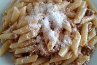 Típico plato sencillo, rápido y rico, para preparar en cualquier época del año y para cualquier comida. La pasta en su salsa bolognesa con toque de queso parmesano, a veces lo sencillo es lo mejor.Ingredientes para 2 pax