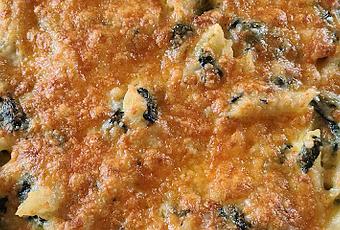Cocemos la pasta según indique el fabricante o según vuestro gusto, una vez cocida escurrimos y pasamos a la sartén con la salsa, mezclamos bien y pasamos a una fuente que pueda ir al horno.