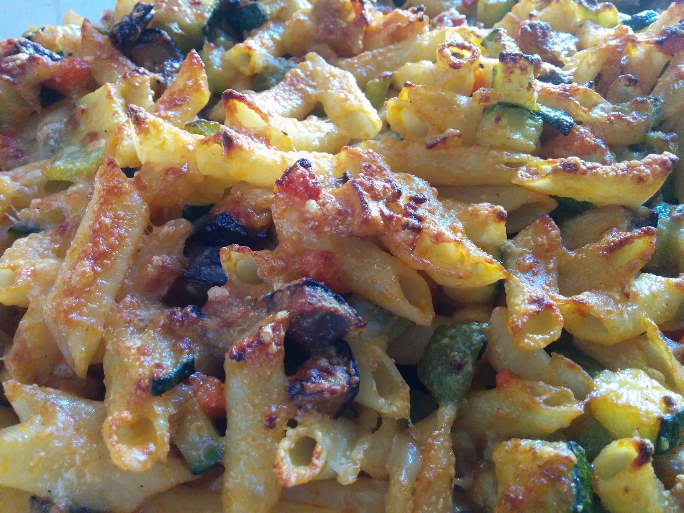 1 berenjena1 calabacín1 carlota1 cebolla1 pimiento verde180gr de macarrones80gr de queso parmesano rallado80gr de tomate fritoOrégano (opcional)AceitesalPREPARACIÓN