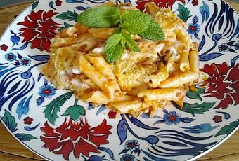 Preparar la salsa bechamel como se indica en este enlace.En una fuente de horno untada con mantequilla, echamos la mitad de los macarrones, cubrimos con la mitad de la bechamel, echamos el resto de los macarrones y encima el resto de la bechamel.