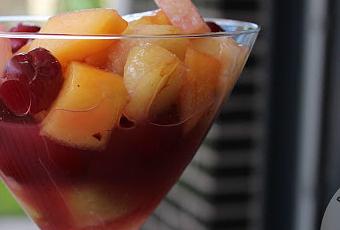 Me repito más que una ajo, pero os voy a volver a decir que suelo hacer macedonias cuando empiezan a quedar frutas en el frutero que nadie se come, de esta forma les suelo dar salida fácilmente, esta macedonia lo único que tiene de especial es que he puesto una cucharadita de pasta de vainilla de Home Chef y que las frutas empleadas (menos la piña, que era de bote) son frutas ya típicas de primavera-verano.