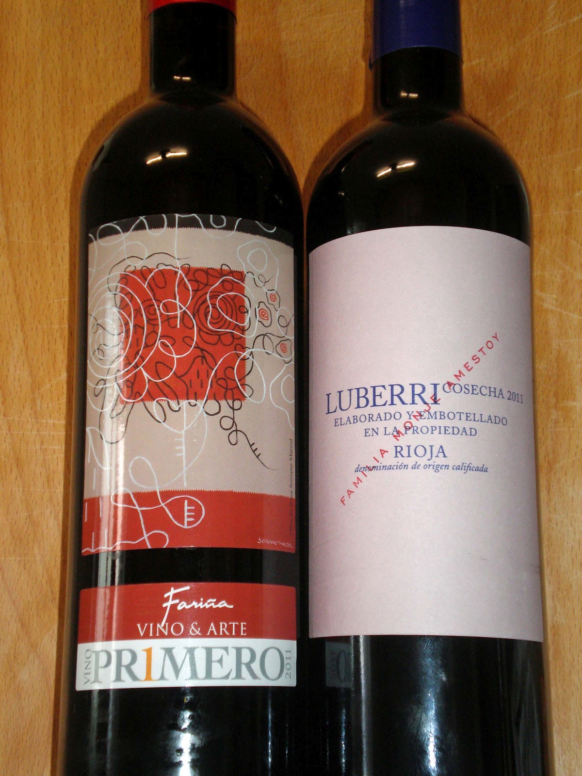 Bodegas Fariña elabora el primer vino de maceración carbónica de la DO Toro. Maceración y fermentación durante unos 7 días a 20ºC en depósitos de fermentación de acero inoxidable dan origen a Primero 2011 (DO Toro, tinto maceración carbónica, 100% Tinta de Toro, Bodegas Fariña). Un precioso vino de color cereza picota, de ribetes violáceos, muy limpios y brillantes. Intensos aromas a frutas rojas (frambuesa), violetas y recuerdos lácteos (nata, yogur) muy discretos. En boca, muy fresco, frutal, sabroso y algo secante al final. Gustó mucho en la mesa.