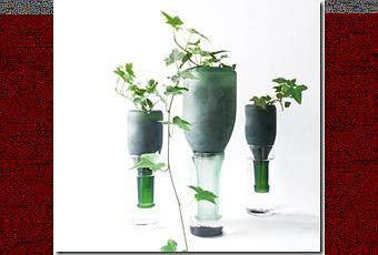 Son botellas de plástico a las que se las abre por el fondo, y directamente las ponemos en un vaso con agua, para que por capilaridad la planta se riegue.
