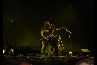 Los de Oakland ya conocían el recinto de su visita hace cuatro años en el Electric Weekend, si bien en aquella ocasión, tocaron en una carpa y ahora lo harían en el escenario principal. No se les puede negar la subida de caché que han tenido a lo largo de ese tiempo. Previamente al concierto, y tras el fiasco de Soundgarden, nos fuimos situando hacia las primeras posiciones a la izquierda del escenario. De repente, se abren los accesos al Black Circle que se había montado para que, un día después, lo disfrutaran, entre otros, aquellos fans de Metallica que hubiesen pagado el correspondiente bono. Ante lo cual, nos avalanzamos para poder entrar y así poder ver el concierto, literalmente, desde las primeras filas. Se oye un crujido y salen a la palestra los personajes, tomando posiciones dentro del escenario y marcando lo que es y será su área. Robb Flynn se coloca en el centro, mientras que el bajista Adam Duce y el guitarrista Phil Demmel, su antiguo compañero en Vio-lence, lo hacen a la derecha e izquierda, respectivamente. El baterista Dave McClain aguarda que terminen las voces corales para dar comienzo a "I am Hell (Sonata en C#)", el primer trallazo de esta noche, con un doble bombo bestial. Todo lo que sigue a este momento se puede definir como locura colectiva y "Be still and know", el segundo de los temas de su último CD, Unto the locust, que sonaría esta noche, no iba a hacer más que acrecentar esa pesadilla sónica. "Imperium" sería el tercer tema, tras el cual Robb Flynn agradece el cariño del público y presenta el tercer tema del disco de las langostas, "Darkness within", con una parte vocal , que si bien en el disco te resulta extraña, en directo, te pone los pelos de punta. "Who we are" le sigue, con esos coros vocales infantiles mezclados con sección de cuerda, para terminar con un gran Halo, de su anterior The Blackening, que ya presentaron aquí hace cuatro años. Lo mejor de este cortísimo concierto: sin duda, el poder ver a un gran grupo, que va ganando día a día, gracias a las tablas que da el realizar giras sin parar. Por contra, lo peor: primero, el constante doble bombo, que en muchísimas ocasiones se comía el resto de los instrumentos (mal oficio por quien estuviese a los controles de la mesa de sonido). Segundo: el terrorífico golpe que se llevó una pobre chica, a la que tuvieron que desalojar en camilla, después de un circle pit en la tercera canción. Y tercero, que por culpa de ir arrastrando un retraso a lo largo de todo el día, el último grupo tuviese que pagar los platos rotos y se le obligase a recortar su setlist, dejándose en el tintero temas como "Aesthetics of hate" o "Davidian", con el que suelen cerrar todos sus conciertos, aunque éste último sonase en la fiesta que se estaba montando en la carpa de los DJs, así que a falta de pan, buenas son tortas. Y como no hay dos sin tres, ni tres sin cuatro, el frío que hacía cuando las luces del escenario se apagaron, pero de eso no se le pueden echar las culpas a la organización.