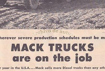 La publicidad, que nos sirve de ilustración, la tomé de la página 7 de la revista estadounidense Time con fecha del día lunes 9 de diciembre de 1957. Vemos tres modelos diferentes de camiones Mack.