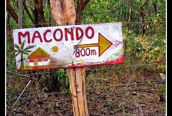 "El tren hizo una parada en una estación sin pueblo, y poco después pasó frente a la única finca bananera del camino que tenía el nombre escrito en el portal: Macondo. Esta palabra me había llamado la atención desde los primeros viajes con mi abuelo , pero sólo de adulto descubrí que me gustaba su resonancia poética...Lo había usado ya en tres libros como nombre de un pueblo imaginario...El tren pasaba a las once por la finca Macondo y diez minutos después se detenía en Aracataca." (Su pueblo natal)