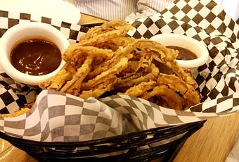 Para comenzar, pedimos unos aros de cebolla, la gran debilidad de Ana.