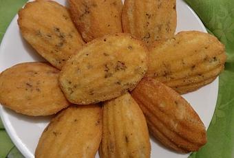9. Remove the batter from the fridge. Spoon 1 tablespoon batter into each well in the madeleine pan. Bake for 10-15 minutes. Remove the pan from the oven and let cool for 3 minutes. Gently remove the madeleines from the pan and transfer them onto a cooling rack