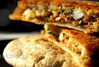 Se acostumbra a hacer sin levadura, aunque hay quiensí que la incorpora. Amasamos el pan, le damos forma redondeada como si fuesela base de una pizza, en el centro introducimos todos los ingredientes, quehabremos picado muy finamente, vamos cerrando la base haciendo coincidir en elcentro todos sus vértices, amasamos hasta que quede un pan totalmente redondo yplano. Procedemos a la cocción tal como había explicado anteriormente.Es muy habitual, comprar toda esa mezcla yapreparada en las carnicerías de ese zoco, la destreza que tienen los vendedoresen picar todos los ingredientes es asombrosa.Nosotros, solemos hacerla en formato individualcomo los que presentamos en la fotografía..Naturalmente, se puede hacer en casa sin ningúnproblema en un horno convencional, a pesar de que el resultado no es el mismo,también queda muy bien. Probarla, os gustará.Mañana, seguiremos hablando de panes y de hornos.Insh Alá.
