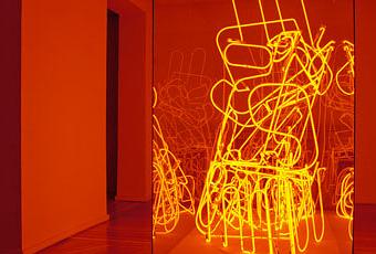 Línea, presente hasta el 26 de mayo, nos habla del tiempo, del espacio, de instalaciones que se apoyan en la geometría aunque ésta en ocasiones sea distorsionada en beneficio del significado y la profundidad. Pero también es un ejercicio de interacción entre materias –cristal, tinta, gas–, energía (representada por los más de 40 neones rojos de la escultura Dulcinea) y el espectador, cuya mirada deviene fundamental a la hora de disfrutar de la fisicidad de algunas de las obras expuestas.