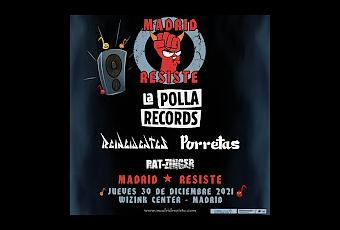 Madrid Resiste será un gran evento previsto para el 30/12 en el WiZink Center de Madrid con muchas sorpresas. Un elegante grupo de proyectos musicales se unirán el 30/12 en el WiZink Center de Madrid donde habrá más de una sorpresa.El 30/12 encontraremos una fiesta muy especial, será en el WiZink Center de Madrid, el festival se adaptó a la situación por el Covid-19 y en este cartel encontraremos cuatro proyectos más que interesantes, por un lado La Polla Records y para la ocasión Reincidentes, Porretas y Rat-Zinger estarán en este elegante y potente cartel donde defenderán sus mejores temas, una propuesta de cuatro bandas y mucha calidad.