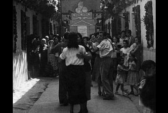 El espíritu de estas celebraciones se ha sabido mantener con el paso del tiempo tal y como admiramos en la fotografía antigua que me he animado a rescatar hoy. En ella varios alegres vecinos aprovechan la clandestinidad y resguardo que les proporciona un patio para bailar, reír y disfrutar. Un patio, por cierto, perfectamente engalanado para la ocasión y que hace las veces de improvisada pista de baile. Una prueba de que la esencia de estas verbenas ese abraza a pie de calle.