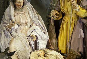 El Nacimiento no es una obra de arte a los ojos de los adultos; pero los chicos encuentran tanta belleza en las figuras, expresión tan mística en el semblante de todas ellas, y propiedad tanta en sus trajes, que no crean haya salido de manos de los hombres obra más perfecta, y la atribuyen a la industria peculiar de ciertos ángeles dedicados a ganarse la vida trabajando en barro. El portal de corcho, imitando un arco romano en ruinas, es monísimo, y el riachuelo representado por un espejillo con manchas verdes que remedan acuáticas hierbas y el musgo de las márgenes, parece que corro por la mesa adelante con plácido murmurio. El puente por do pasan los pastores es tal, que nunca se ha visto el cartón tan semejante a la piedra, al contrario de lo que pasa en muchas obras de nuestros ingenieros modernos, los cuales hacen puentes de piedra que parecen de cartón. El monte que ocupa el centro se confundiría con un pedazo de los Pirineos, y sus lindas casitas, más pequeñas que las figuras, y sus árboles figurados con ramitas de evónimus, dejan atrás a la misma Naturaleza.