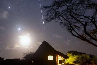 Captados aquí desde el Parque Nacional de Amboseli (Kenia), se alineaban cerca del plano de la eclíptica con un tenue Marte y un brillante Júpiter en la parte superior y la luz de la Luna sobreexpuesta que, aún así, no merma el resplandor de Venus. Por si la Luna y los planetas no fueran suficiente, la raya comparativamente brillante de un meteoro de las Táuridas se añadió a la escena. Las lluvias de meteoros de las Táuridas de noviembre se han distinguido por una alta proporción de bólidos. Estos meteoros, aparentemente surgidos de los radiantes de Taurus, son causados por el paso anual de nuestro planeta a través de los restos del cometa 2P / Encke. Los granos de polvo del cometa llegan a la atmósfera de la Tierra a una velocidad relativamente baja de unos 27 kilómetros por segundo.