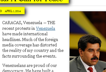 "Los hechos desmienten las afirmaciones de que Venezuela tiene una democracia deficiente y que las protestas actuales representan el sentimiento dominante. Las protestas antigubernamentales están siendo lideradas por miembros de los segmentos más pudientes de la sociedad que lo único que persiguen es revertir los logros de un proceso democrático que ha beneficiado a la gran mayoría de la población", asegura el presidente. Entre esos logros del chavismo subraya la reducción de la desigualdad, la disminución de la pobreza desde el 49% en 1998 hasta el 25,4% en 2012, la creación de un sistema universal de sanidad y programas de educación gratuitos, el fortalecimiento de la Policía Nacional y la renovación del sistema penitenciario.