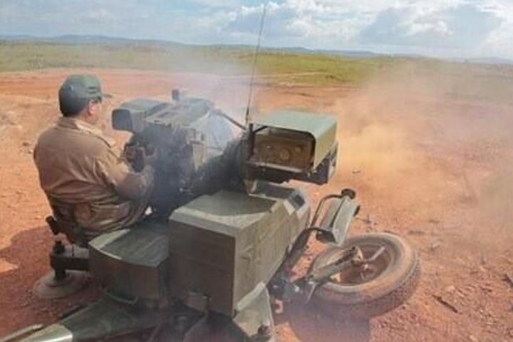 Compartió algunas fotos en las que posa junto a varios militares, en otra se ve montado en un tanque y finalmente la polémica foto en la que se le observa utilizando artillería antiaérea.