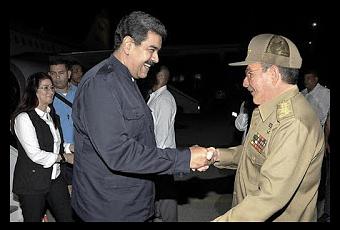 Cercano a la medianoche de este jueves, Raúl Castro Ruz, Presidente de los Consejos de Estado y de Ministros, recibió en el aeropuerto internacional José Martí a Nicolás Maduro Moros. También acudió el Primer Vicepresidente de los Consejos de Estado y de Ministros, Miguel Díaz-Canel Bermúdez.