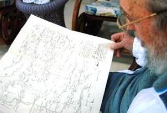 Aquí está el Comandante Fidel analizando el mapa del Gran Mariscal Sucre con el que dirigió la Batalla de Ayacucho