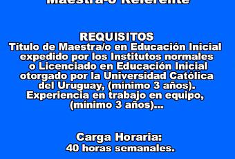 Lea con Atención !!Al Final de la Publicación Está el Acceso al Registro...Brindamos la Información Como nos Gusta Recibirla...Inscripciones hasta el 24/11/2025DETALLES DEL ANUNCIO DE EMPLEO👀Requisitos:Título de Maestra/o en Educación Inicial expedido por los Institutos normales o Licenciado en Educación Inicial otorgado por la Universidad Católica del Uruguay, (mínimo 3 años).Experiencia en trabajo en equipo, (mínimo 3 años).No tener vínculos familiares o parentesco de consanguinidad hasta el tercer grado con el resto del personal e integrantes de la Asociación Civil.CV con información que acredite los requerimientos mencionados.Se valorará:Experiencia en trabajo socio educativo comunitario.Experiencia en SIPI.Curso de CENFORES.