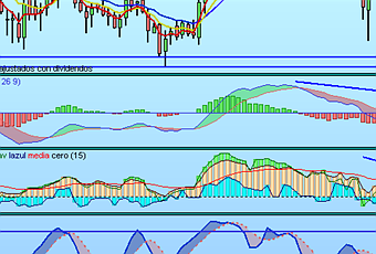 En el gráfico diario de Mafre, se aprecian también las divergencias bajistas, pero hay que saber diferenciar entre una empresa bajista y una empresa alcista. Mafre sólo necesita un descanso y probablemente un recorte, pueda ser una buena oportunidad de compra para el que le guste apostar a empresas fuertes. Un recorte sano y que no desvirtuaría su tendencia alcista, podría llevar a Mafre a cotizar entorno a 2.45-2.35.