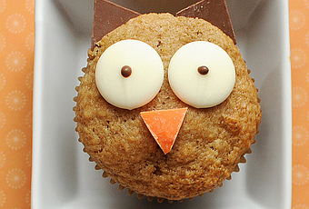 Funde un poco de chocolate para pegar los chips a la magdalena, o compra un gel especial para estos casos.